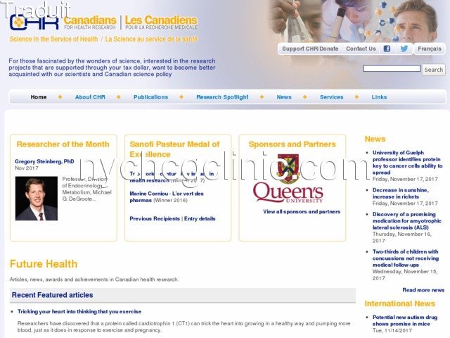 Les canadiens de Recherche en Santé | Les Canadiens pour la recherche medicale - Pour ceux fasciné par les merveilles de la science, intéressés par les projets de recherche qui sont pris en charge par vos impôts, vous voulez faire plus ample connaissance avec nos scientifiques et de la politique scientifique Canadienne.
