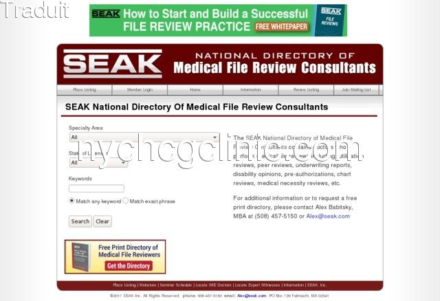 SEAK, Inc. - le dossier médical des examens, l'utilisation des examens, des examens par les pairs, la souscription de rapports, d'invalidité, des opinions, des pré-autorisations, études de dossiers, de la nécessité médicale d'examens