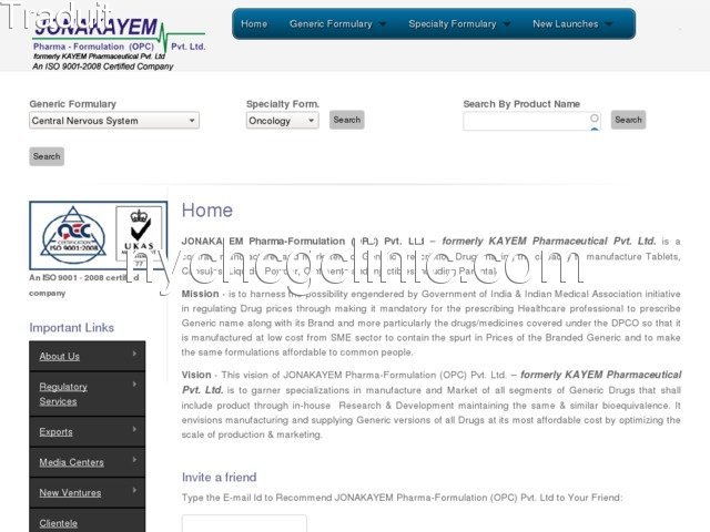JONAKAYEM Pharma-Formulation (OPC) Pvt Ltd | médicaments Génériques aux Antimicrobiens et les Infections Graves, des médicaments Génériques pour le Trouble Panique et Agrophobia, médicaments Génériques pour l'Amygdalite - À bas prix des médicaments Génériques Pour le Système Digestif, Anti-Allergie, l'Anxiété, la Dépression et le Stress Pilules, Problème Cardiaque, à Bas prix des médicaments Génériques Sur la Dysfonction Érectile et de l'appareil Génito Urinaire, Tracts, à Bas prix des médicaments Génériques Pour la Fertilité Et Anti-Fertilité, à Bas prix des médicaments Génériques sur le VIH / SIDA, les Infections de l'Infestation, à Bas prix des médicaments Génériques pour la Guérison du Diabète Sucré, pas Cher Générique de la Médecine Anti Oculaires Infectieuses et Inflammatoires, pas Cher Médicament Générique pour le Contrôle Du Rejet Des Organes au Cours de la Transplantation, à Bas prix des médicaments Génériques sur le Caner du cancer, pour la lutte contre le Tabagisme et l'Alcoolisme, Pas cher Générique PrescriptionChelating Agents, à Bas prix des médicaments Génériques Sur les Troubles de la Peau, d'Économiser plus de 70% avec livraison gratuite