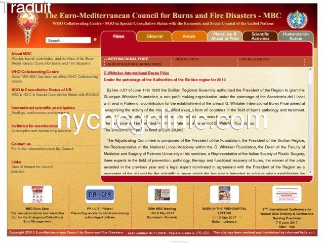 Le Conseil Euro-Méditerranéen pour Burns and Fire Disasters - Centre Collaborateur de l'OMS - Le Conseil Euro-Méditerranéen pour Burns and Fire Disasters (MBC) est Centre Collaborateur de l'OMS pour la prévention, le traitement des brûlures et d'incendie et les catastrophes. Elle implique la chirurgie, la science et les forces intellectuelles de tous les pays de la Méditerranée